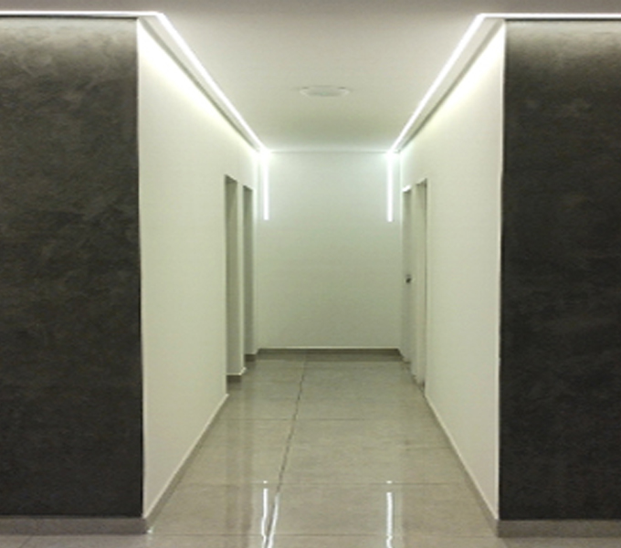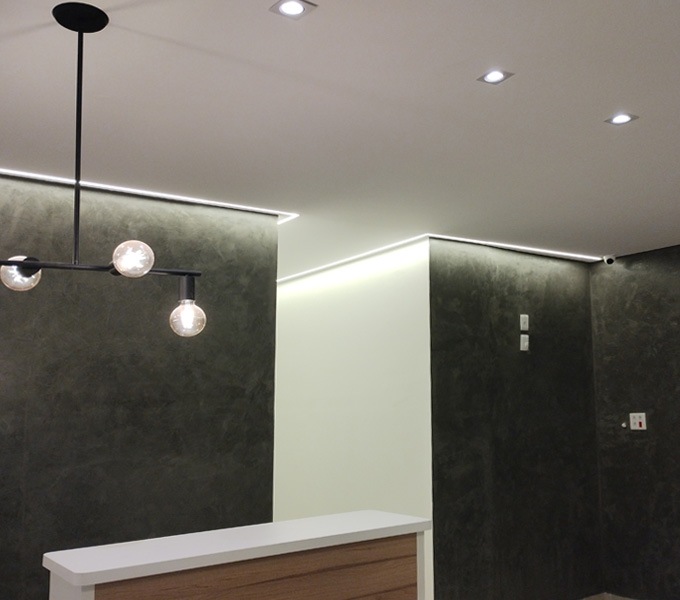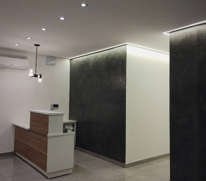 Fizemos para o consultório todo o projeto eletroeletrônico: dimencionamento de cargas, projeto e instalações elétricas; projeto luminotécnico e instalações; segurança eletrônica com câmeras, interfonia e controle de acesso; e automação